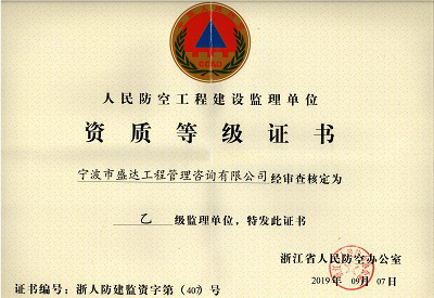 資質(zhì)是企業(yè)生存和發(fā)展的基礎(chǔ)。公司人防工程監(jiān)理乙級資質(zhì)的成功晉升,是公司繼年初年取得造價咨詢乙級資質(zhì)后的又一資質(zhì)建設(shè)方面的重大進步,使我盛達工程管理咨詢有限公司在同行業(yè)中的競爭能力又得到了提升,為公司能更好的承接高標(biāo)準的人防監(jiān)理業(yè)務(wù)奠定了堅實的基礎(chǔ)。